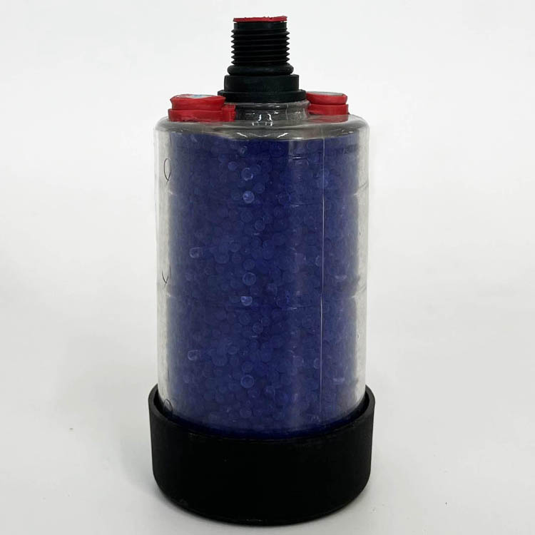 Desiccant gel changes color from blue to pink to indicate that it is removing moisture, as well as when to replace the breather.